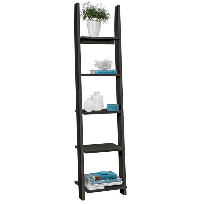Ta regal v črni barvi navduši s svojim trendovskim poševnim dizajnom. Zahvaljujoč melaminskemu premazu je enostaven za čiščenje, 5 polic pa ti ponuja veliko prostora za knjige, rastline in okrasne predmete. Zaradi preproste zasnove je ta polica idealna za uporabo v številnih bivalnih prostorih.
