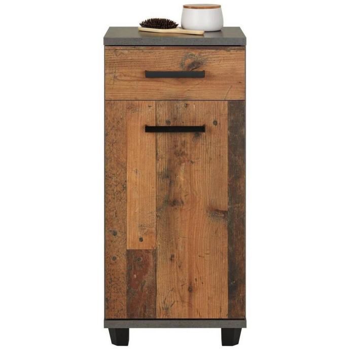 S kopalniško serijo VERIS lahko v svojo kopalnico vneseš kanček naravnega videza. Pohištvo iz imitacije lesa se še posebej dobro poda k nežni kombinaciji temno sivega videza betona na korpusu in front v videzu starega lesa. Elegantna serija navdušuje tudi s prostorom za shranjevanje in premišljeno notranjo razporeditvijo. Ne glede na to, ali gre za kopalnico ali ločeno stranišče – osnovna omarica z merami približno 40 x 91 x 35 cm (Š x V x G) ima idealne dimenzije in nudi veliko prostora za shranjevanje. Vse, kar ne sodi v predal, lahko pospraviš za vrata, od brisač do zbirke elastik za lase.