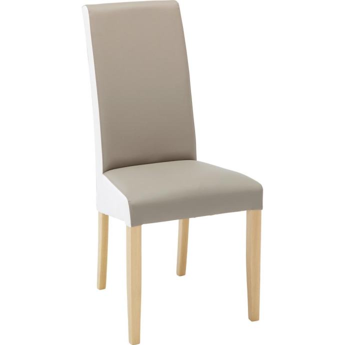 Brezčasen in eleganten videz za tvojo jedilnico! Približno 48 x 104 x 48 cm (Š x V x G) velik stol s prevleko v videzu usnja rjave barve s poudarki v beli barvi in z nogicami v naravni bukvi. Zaradi oblazinjenja iz pene vedno udobno sediš.