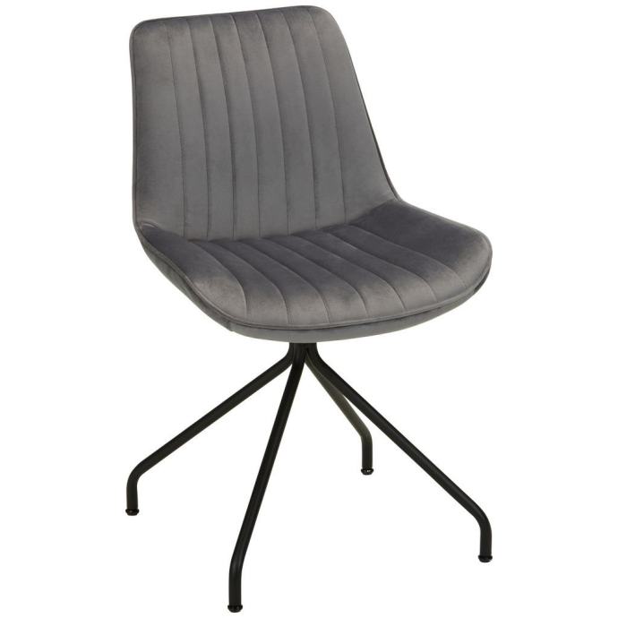 Popolnoma mehak in eleganten. Te besede odlično opisujejo naš sivi stol. Ta okusen stol je idealen nakup za vse, ki radi ostanejo v kuhinji tudi po jedi. Stol meri ca. 50 x 83,5 x 51 cm (Š x V x G) in je lahko obremenjen do največ 120 kg. Okvir je v črni barvi in izdelan iz prašno lakirane kovine. Vrtljiv sedež je prevlečen z žametom za več udobja. Prefinjeni okrasni šivi so češnja na torti tega elegantnega stola.