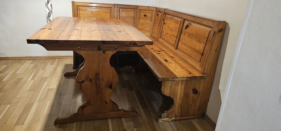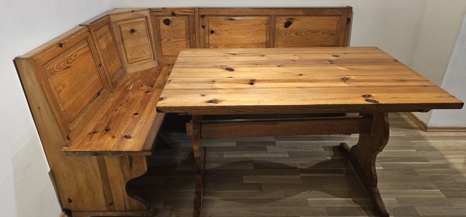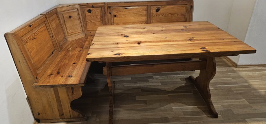 Prodam, masivno mizo in pripadajočo klop iz smrekovega lesa. Dimenzije mize 120x80cm. Vidni so sledovi obrabe.