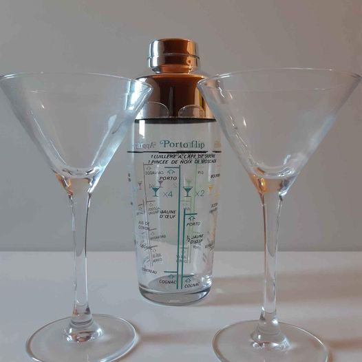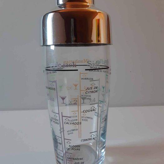 Prodam shaker/mešalnik za koktajle z napisanimi mericami za več vrst koktajlov, ter 2 kozarca za martini.