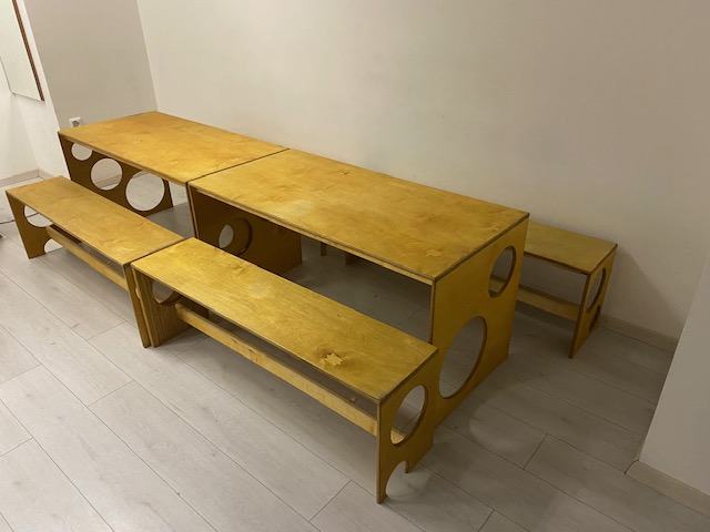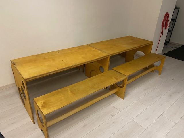 Prodam 2 mizi in 4 klopi z lesa, dolžina mize in klopi je 1.5 metra