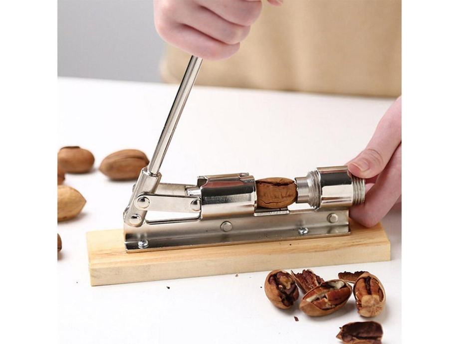 LESENO STOJALO – celotna kovinska konstrukcija odpirača za orehe je postavljena na trdno leseno podlago, ki ne le dobro in stabilno stoji na pultu, ampak je tudi enostavna za čiščenje in trpežna.