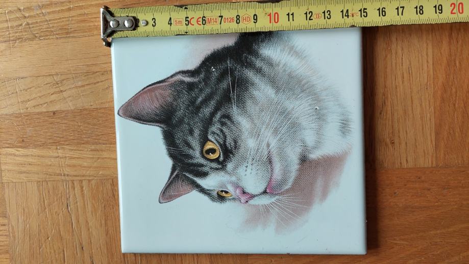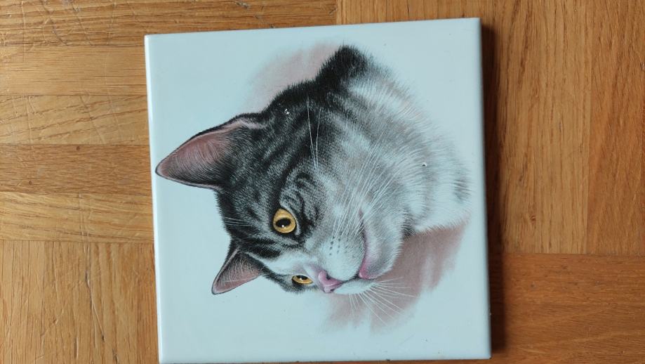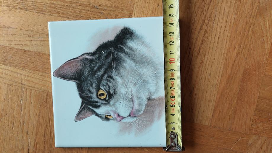 Prodam ploščico 15 cm x 15 cm bele barve z naslikano muco.