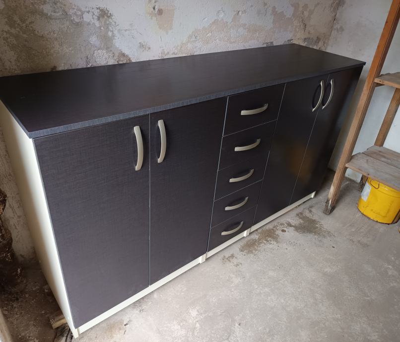 Prodam odlično ohranjeno omaro z dvojimi dvojnimi vrati s policami in petimi predali. Omara velikosti DxVxŠ (cm): 201x110x56.