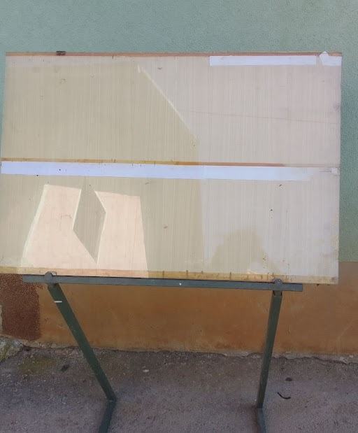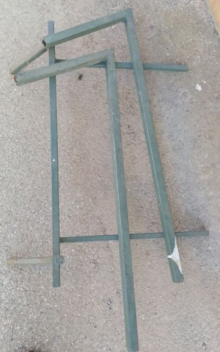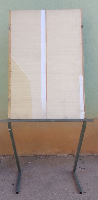Kovinska konstrukcija iz kvadratnih cevi , ko se zloži skupaj iz treh delov je širine 78 cm, višina panoja od tal je cca 82 cm, dimenzija panoja je 97 X 64 cm