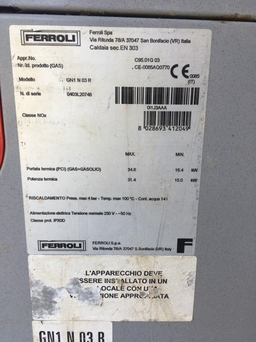 Peč - Kotel FERROLI na kurilno olje nikoli rabljena plus gorilec FERROLI nikoli rabljen praktično NOVO, ter vsi priključki z filtrom.