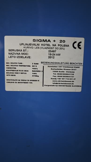 Prodam delujočo peč na polena na podpih, Sigma 20 kw, letnik 2012. Peč je v kompletu z lambda sondo in vso regulacijo in vsemi tipali za bojler, zalogovnik in dva ogrevalna kroga.