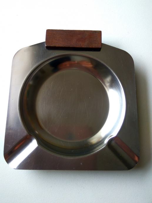 Prodam pepelnik iz nerjavnega jekla v kombinaciji z obstojnim tropskim lesom, velikost 11 x 12 cm. Modernega videza, praktično neuničljiv, večen.