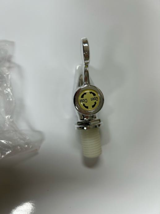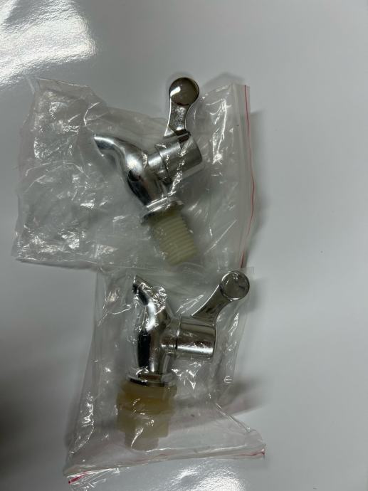 Prodajam novo pipo za stekleno posodo za pijačo, ki še ni bila uporabljena. Kovinska pipa s kromiranim zaključkom in plastičnim navojem je idealna za točenje pijač iz steklenih posod. Eleganten dizajn in enostavna montaža zagotavljata praktično uporabo v vsakem domu.