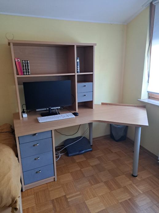 Prodam kotno pisalno mizo, mere 75/185, barve bukev/srebrno siva.