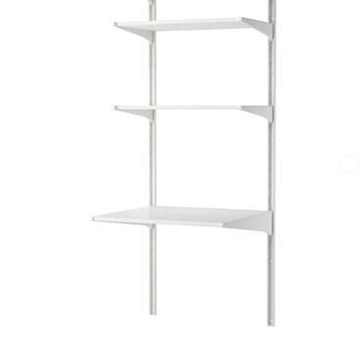 Prodamo stoječo pisalno mizo za simbolično ceno. Je iz linije Algot (Ikea), ki ni več v prodaji. Gre za dve letvici, ki se namontirata na zid in na kateri lahko po želji pritrdite 3 police - eno široko za tipkovnico in dve ožji, od tega je ena namenjena monitorju.