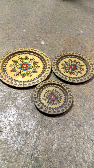 Prodam pladnje leseni lahko se obeša na steno kot slika tri komade ugodno cca 8€ za komplet ali posamezno na mali SMS ali Tel klic.. LJ..031*482*592