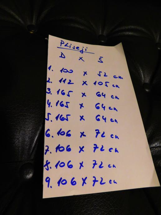 Prodam plise zavese zaradi menjave oken in sicer 1 kom dimenzije 100 cm x 52 cm, 1 kom dimenzije 112 cm x 105 cm, 3 kom dimenzije 165 cm x 64 cm in 4 kom dimenzije 106 cm x 72 cm. Cena 20 eur za komad.