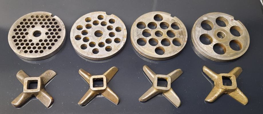 Prodam različne plošče + nože za ročno mesoreznico št.10. Cena za eno ploščo + en nož je 10 EUR.