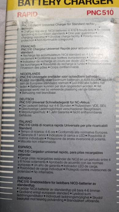 Philips universal NICD recharge unit rapid PNC 510 je polnilec, ki napolni baterije v 4. - 6. urah.