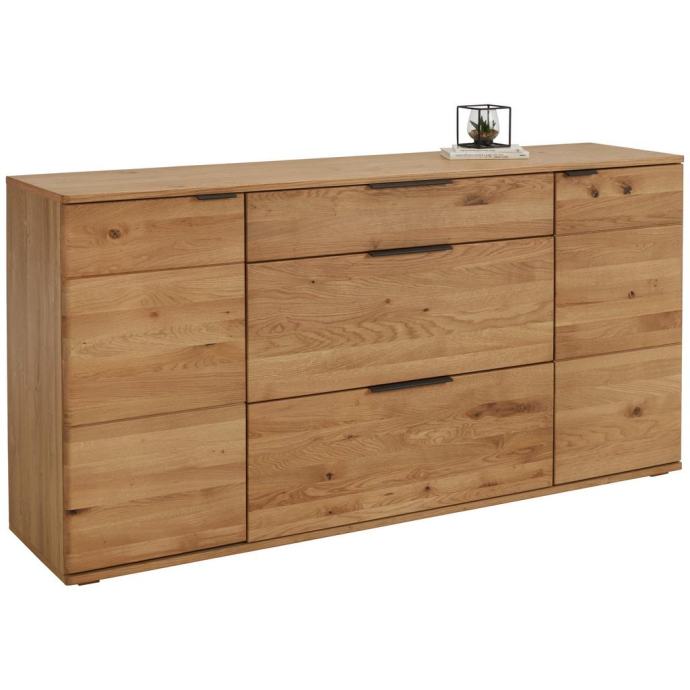 Ta omarica iz visokokakovostnega in obdelanega lesa je idealen kos pohištva za vsak prostor. S svojimi dimenzijami 180 x 90 x 44 cm (Š x V x G) nudi dovolj prostora za shranjevanje tvojih najljubših stvari. Komoda ima dvoja krilna vrata z blažilniki vrat, ki zagotavljajo gladko odpiranje in zapiranje. Poleg tega trije prostorni predali s sistemom mehkega zapiranja nudijo prostor za dodatne predmete. Kovinski ročaji dopolnjujejo privlačno obliko. Ta omara je izdelana iz divjega hrasta, ki je znan po svoji trpežnosti. Opremljena je s štirimi nastavljivimi policami iz stiskane plošče in zdrži maksimalno obremenitev 5-10 kg na polico. Površine so izdelane iz melamina in so enostavne za čiščenje.