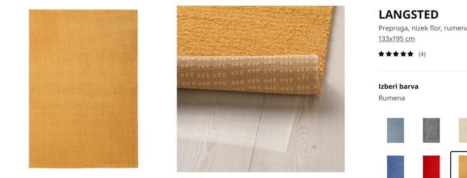 prodam novo preprogo rumene barve dimenzija 133 x 195 cm. Preproga je kupljena v Ikei Ljubljana, nikoli uporabljena.