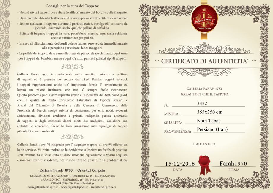Nain Tabas originalna perzijska preproga 355x250cm. Preproga iz Irana je zelo dobro ohranjena. Resice so vse cele. Kupil sem jo in je nisem uporabljal, ker je zame prevelika. Preproga je zelo lepa zaradi svoje barvne kombinacije. 250.000 vozlov na m2.
