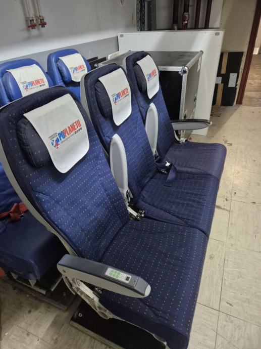 Cena treh zelo dobro ohranjenih letalskih stolov je 300 eur. Drugi komplet srednje dobro ohranjenih 250 eur.