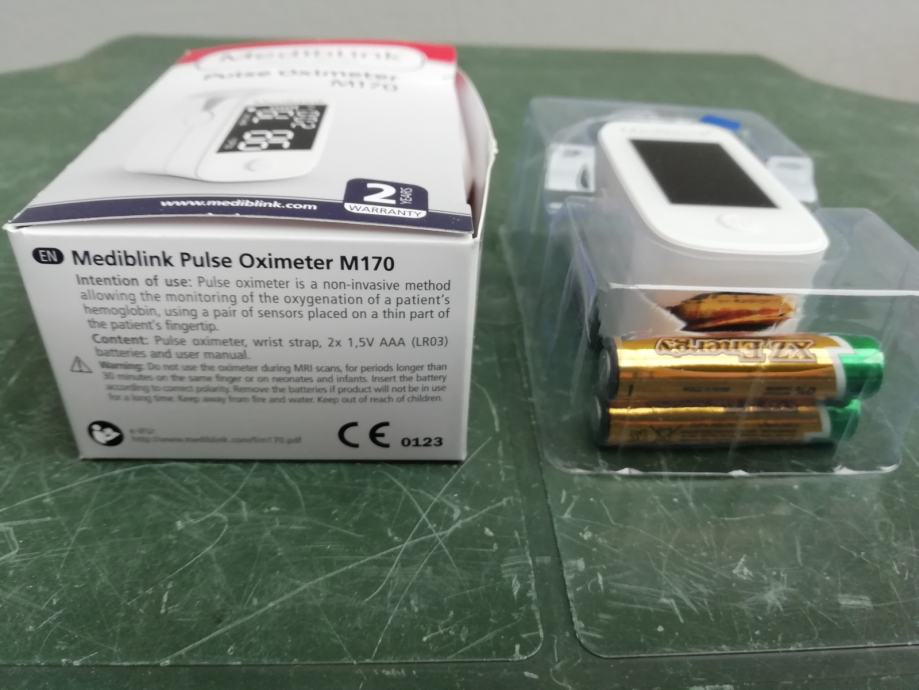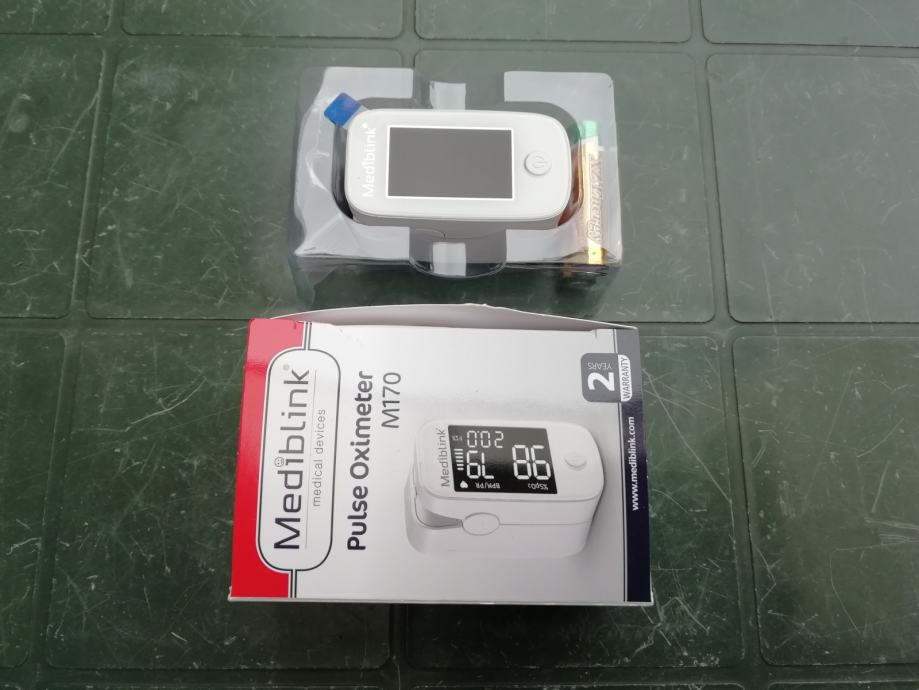 Pulzni oksimeter Mediblink M170, kupljen samo za rezervo, enkrat delovanje preverjeno sicer nerabljen, z računom, garancija velja do 6. oktobra 2027.