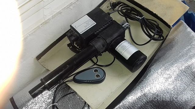 Servomotor za poganjanje mehanizma fotelja-počivalnika prodam. Celotna odprta dolžina cca 50 cm; hod bata 20 cm. El. upravljanje s tasterjem .
