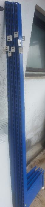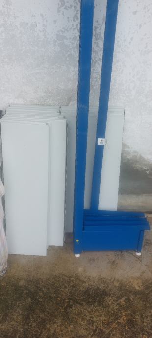 UGODNO-ZNIŽANO prodam razstavljen skladiščni regal.Primerno za skladišče ali klet.Regal je sestavljen iz 5 stebrov viš.220-na nastavljivih nogicah in 21ih polic-4 različne dimenzije ter 35kosov nosilcev polic.Regal je opran,razstavljen in pripravljen za odvoz.Vabljeni k ogledu mojih ostalih oglasov.
