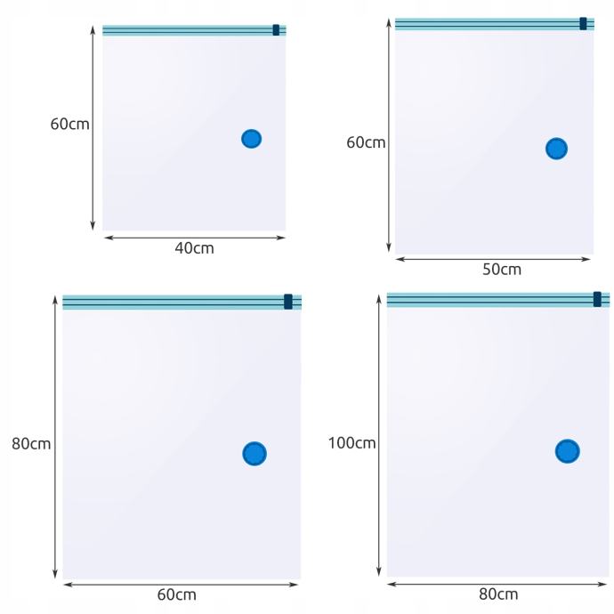 SPECIFIKACIJA – barva: prozorna / modra; mere: (širina/dolžina) 50×60 – 5 kom; (širina/dolžina) 60×80 – 3 kosi; (širina/dolžina) 70×100 – 1 kos; (širina/dolžina) 80×100 – 1 kos; teža: 0,76 kg