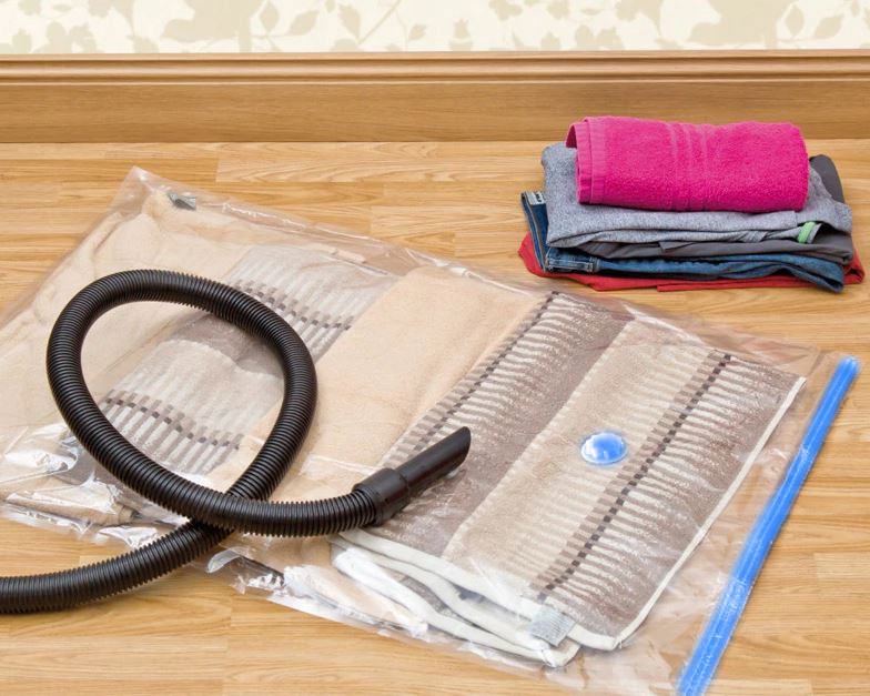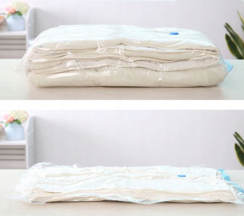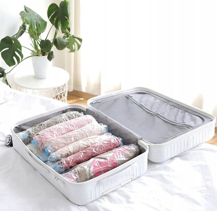 PRIHRANEK PROSTORA – samo spakirajte stvari v torbo. Vakuumska vrečka po izsesavanju zraka z navadnim sesalnikom zmanjša svojo prostornino do 80 % . Prihrani veliko prostora.