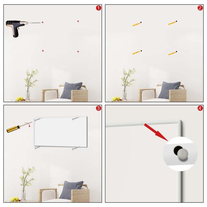 Montaža SLIM IR infrardeče panel grelne plošče je preprosta in jo lahko opravite sami. V kompletu prejmete vse potrebne pritrdilne elemente in navodila za montažo. Ploščo enostavno pritrdite na steno s priloženimi vijaki in distančniki. Priporočamo, da ploščo namestite na sredino prostora, da dosežete optimalno ogrevanje.