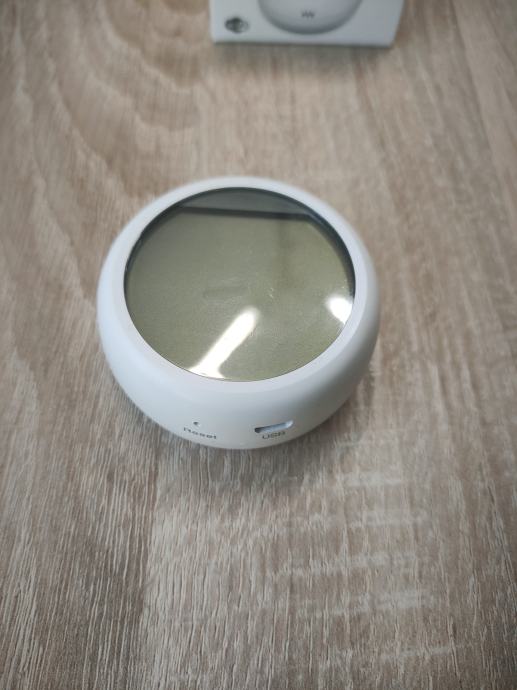 - 1x senzor za temperaturo in vlago (na zaslonu ima zračni mehurček, ki pa ne vpliva na delovanje ali prikaz)