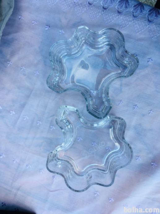 Nove steklene skodelice za prigrizke, sir, olive, kumarice, oreščke, čips, piškote ali omake, etc. 2 kosa velikost cca 15 cm premer, 4 cm višina. Cena za kos.