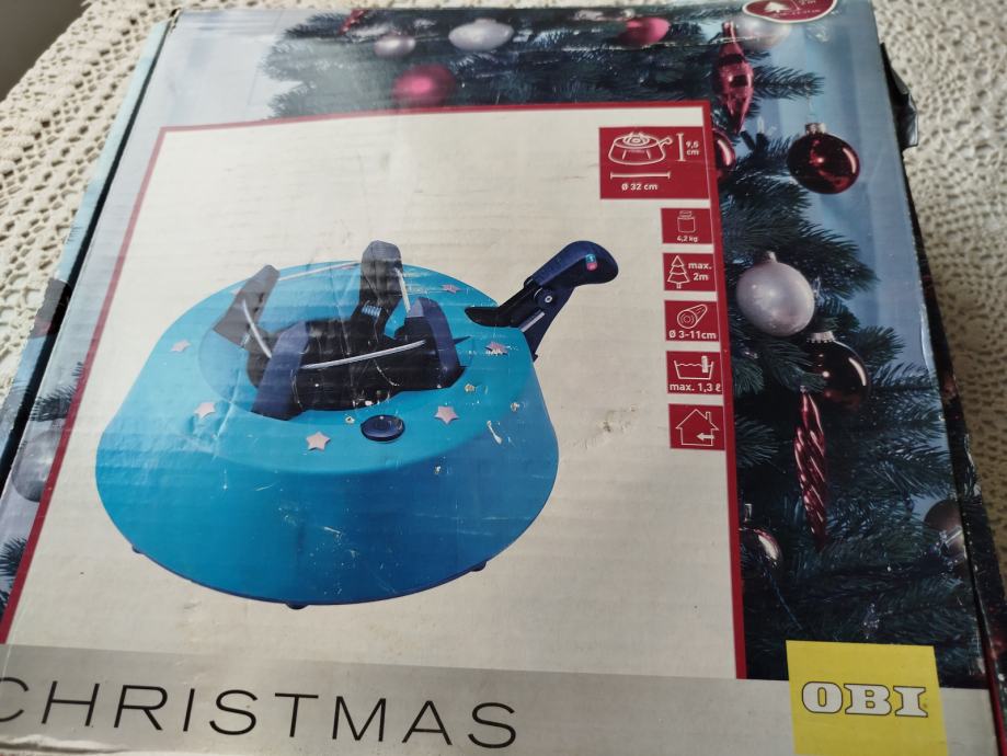 Stojalo za novoletno jelko z uporabo nogalnika in varno postavitvijo,