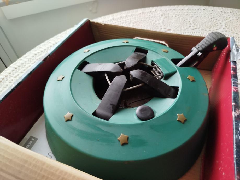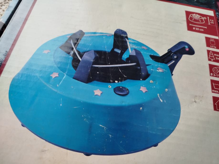 Stojalo za novoletno jelko z uporabo nogalnika in varno postavitvijo