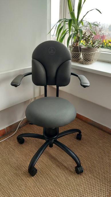 Prodam nerabljen stol Spinalis Basic, kupljen pred cca 2 letoma (ima nov tip koles). Stol je v brezhibnem stanju. Je temno sive barve s črnim ogrodjem. Cena novega je 740 eur.