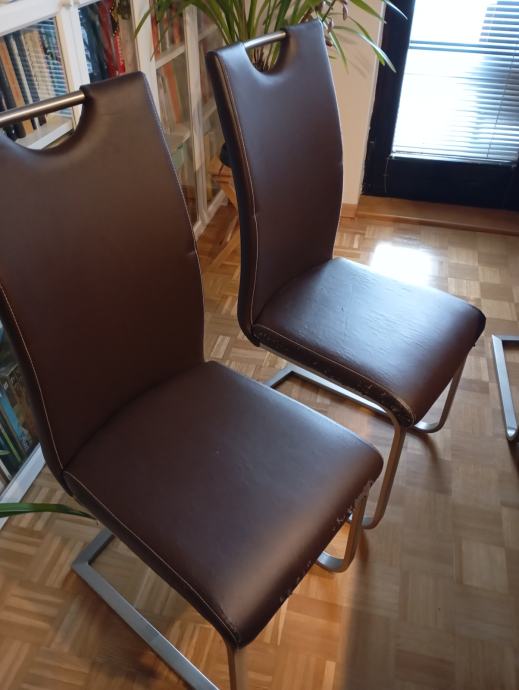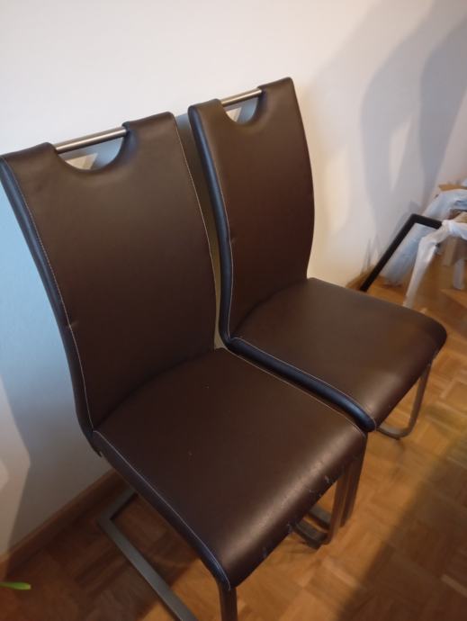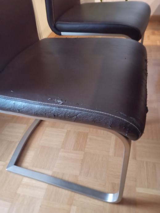 10 kom stolov za jedilnico, kvalitetno podnožje, brezhibni razen razpokanega umetnega usnja.