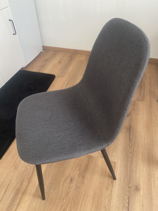 Prodam 4 nove stole. Prodam zaradi selitve. Tekstil v antracit barvi, noge v črni barvi.