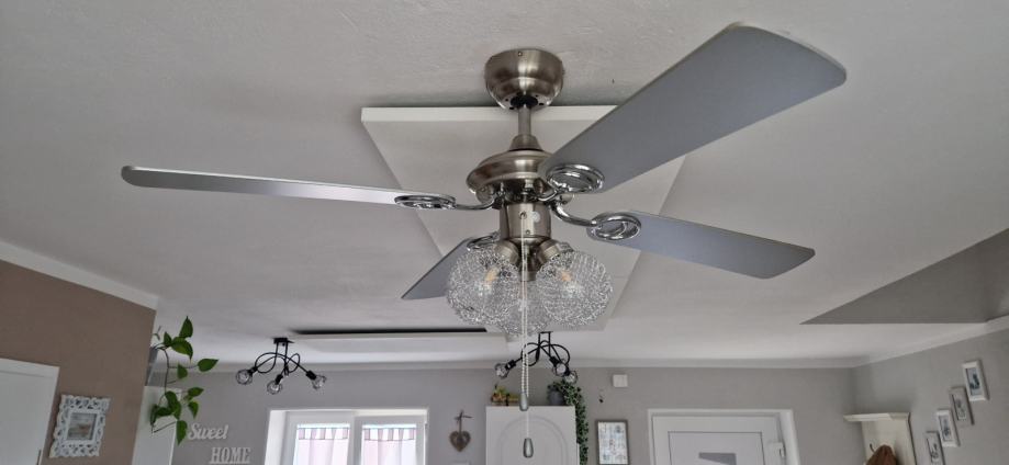 Prodamo stropni ventilator, ki je hkrati lestenec, v odličnem stanju. Cena 20 eur, srebrne barve, lahko pa se obrne lamele na drugo stran, ki je v barvi lesa. Prodajamo pa tudi 2 lestenca v ujemajočem motivu, cena 5 eur/kos.