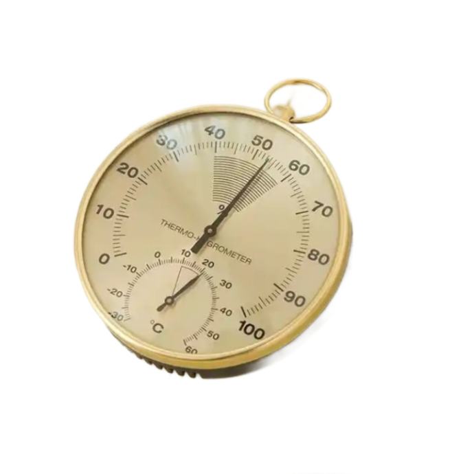 Termometer/Vlagometer v zlati barvi je eleganten in funkcionalen instrument, namenjen natančnemu spremljanju temperature in vlažnosti v vašem domu ali pisarni. Njegov prefinjen zlati dizajn se brezhibno zlije z različnimi notranjimi dekorji, hkrati pa zagotavlja zanesljive meritve za optimalno udobje v prostoru.