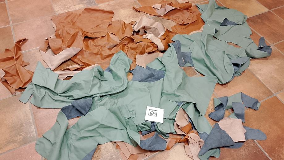 Usnje večji in manjši kosi zelene in rjave barve 5 kg