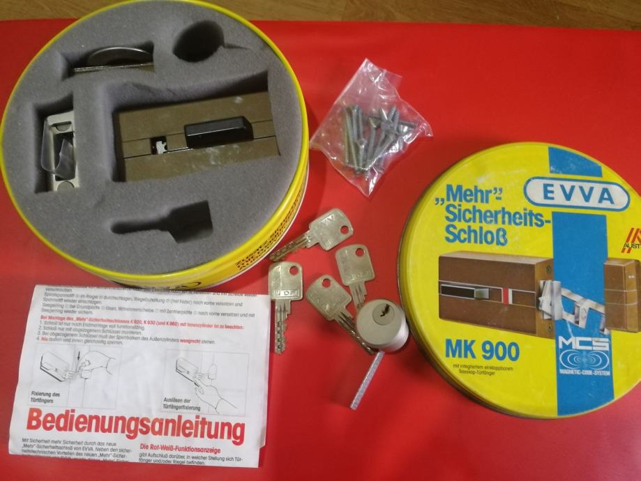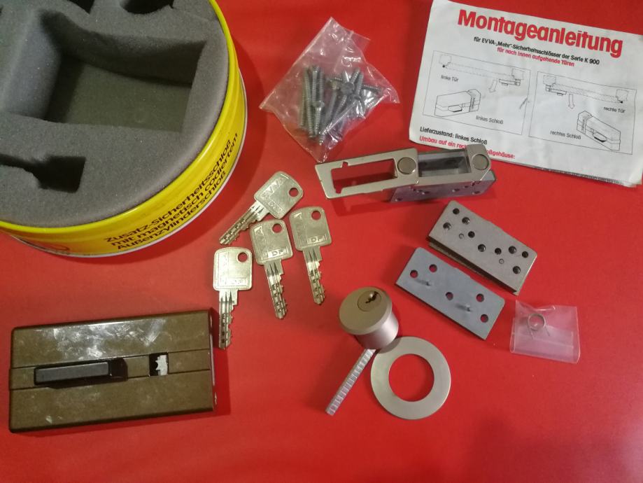 dodatna varnostna ključavnica za vhodna vrata z varovalom, EVVA Avstrija, delno odpiranje vrat, kvalitetna, 4x kodirani ključi, možnost pošiljanja...