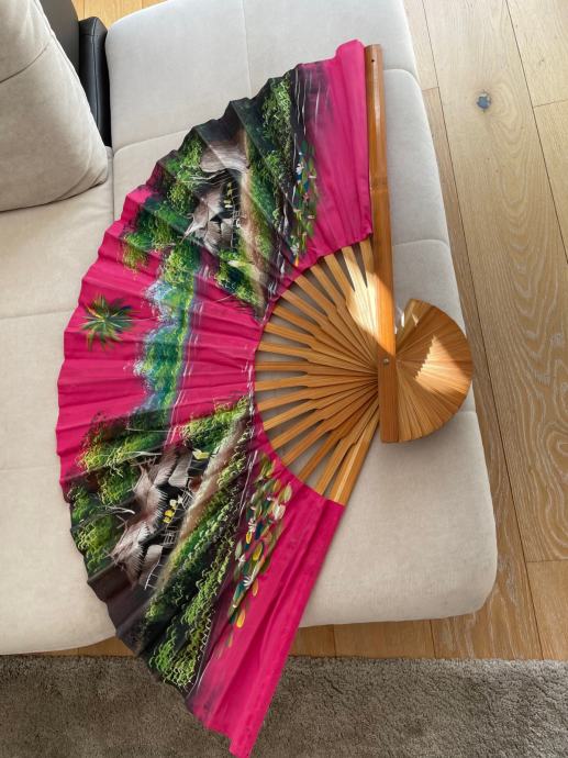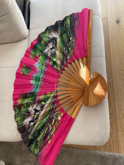 Prodamo veliko pahljačo, ročno delo, pravi les... v pink/ ciklamni barvi. Čudovita za na steno, lepih barv.