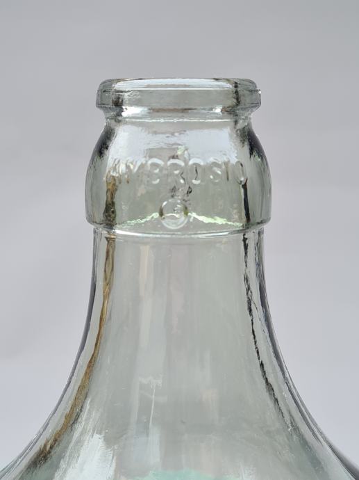 Prodaja se steklenica za vino s sivo plastično košaro ter dvema ročajema, višina meri 31 cm ter premer cca 20 cm.