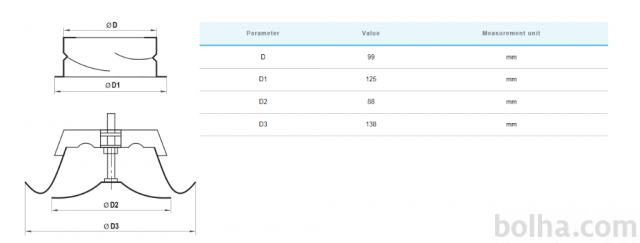 Notranji del ventila zračnega diska se izvleče, da se zagotovi potreben odmik S (mm), da se zagotovi potreben pretok zraka.