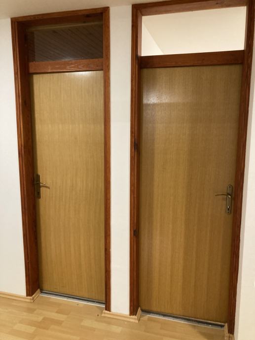Prodam 2 kosa vratnih kril s pripadajočo kljuko in podboji. Na voljo tudi samo en komplet ali ločeno krilo/podboj.