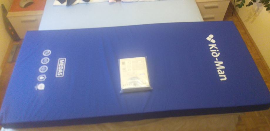 Prodam vzmetnico KID-MAN za negovalno posteljo, dimenzije 90 x 2000 x 12 cm. Bolnica je na njej spala dvakrat. Prevleka vzmetnice je snemljiva in pralna. Prodam tudi negovalni stol s sobnim straniščem, čisto nov nikoli uporabljen. Vse je bilo kupljeno pri podjetju BLAGINJA.