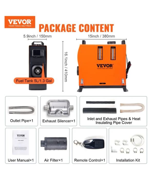 Trojno napajanje 12v 24v +220v tako da ne rabite akumolatorja če uporabljate za vikend garaže delavnice Nov Dizelski grelec vevor )z vsemi certifikati za varno uporabo in adapterjem za vtičnico najboljši samostoječi mora bit zaradi uhajanja co2 pa dima pri cenejših no name grelcih preverjena nemska kvaliteta 12v +220v8kw na kurilno olje nafto je tudi garancija video navodila za uporabo rezervni deli
