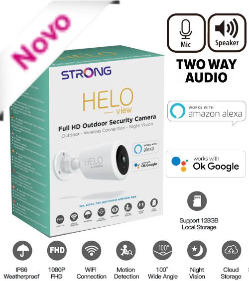 Enostavna za namestitev in enostavna za uporabo, lahko zunanjost vašega doma vidite, poslušate, govorite in nadzorujete svoje družinsko okolje z aplikacijo Helo by Strong. Podnevi in ponoči so kamere HELO View popolnoma učinkovite zaradi tehnologij zaznavanja gibanja in nočnega vida.