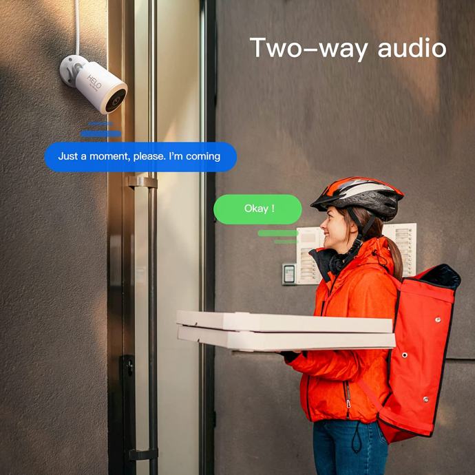HELO View Outdoor Security Camera vključuje zunanjo kamero Full HD z brezžično povezavo. Zunanja kamera Helo View, opremljena s sliko polne visoke ločljivosti 1080P in širokim vidnim kotom 100°, Zahvaljujoč vodotesni tehnologiji IP66 učinkovito opazuje vašo hišo in njeno okolico v vsakem vremenu.